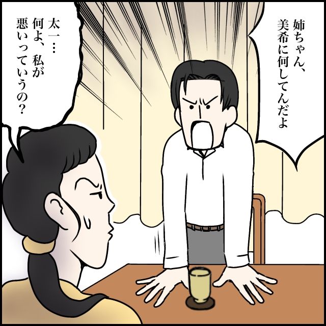 「姉ちゃん、美希に何してんだよ!」太一が立ち上がって玲美さんに怒ると、「太一・・何よ、私が悪いっていうの?」と言い出す玲美さん。