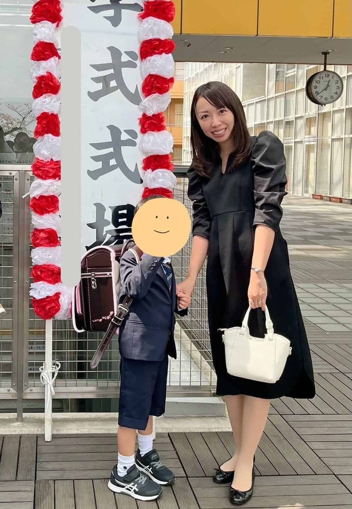 スーツやパンツが苦手なので、ジャケット無しでもきちんと見えて一枚で華やぐ、ボリューム袖の黒ワンピースで出席しました。ベージュなど明るい色でも良いかな?と思ったのですが、初めての入学式なので安心感のある黒を選びました。その分、ちょこんとリボンが付いた靴と白バッグで自分らしさと明るさを添えました。
