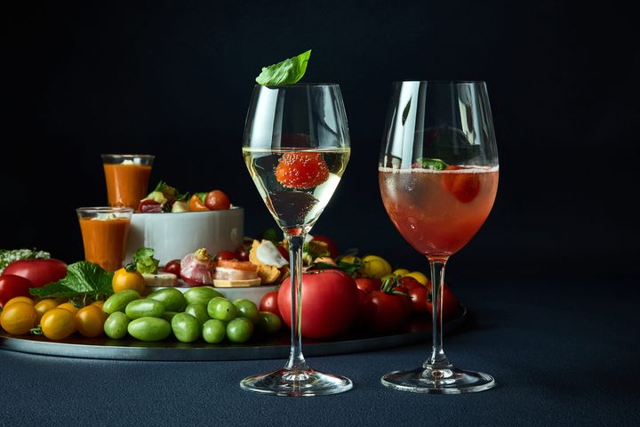 同企画では、シャンパーニュのようなトマトのカクテルもラインナップ。ジンの⾹りにベルガモットのほろ苦さが重なり、トマトの柔らかな余韻が広がる一杯です。爽やかなトマトの風味に、バジルの⾹りが⼼地良いアクセントを添えるノンアルコールのペアリングも見応えがあります。クランベリージュースがほのかな苦味と鮮やかな色合いをプラスし、摘みたてのトマトをそのまま味わっているかのようなフレッシュな味わいに。