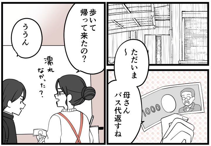 息子が帰ってくると、「これ、バス代返すね」と交通費を返してくれました。