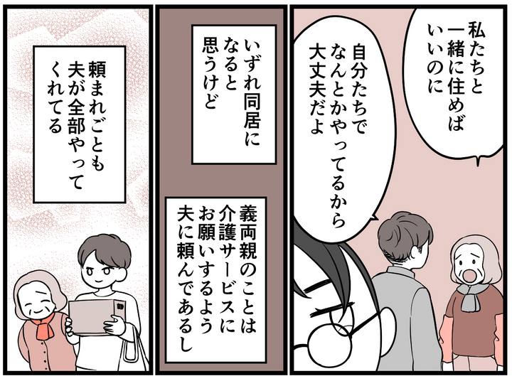 夫からは最初「実家で同居しよう」と言われましたが、私は突然の同居に不安を感じていました。その気持ちを夫も理解してくれて、義実家の近くの賃貸で暮らすことになりました。夫が義両親を積極的にサポートしてくれています。息子に友だちができるか少しだけ心配でしたが、幸いにもすぐに友だちができました。私は今の生活に満足しています。