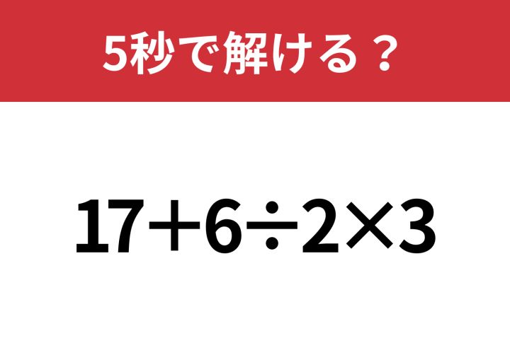 大人でも間違えるかも!?「17+6÷2×3」5秒で解ける?