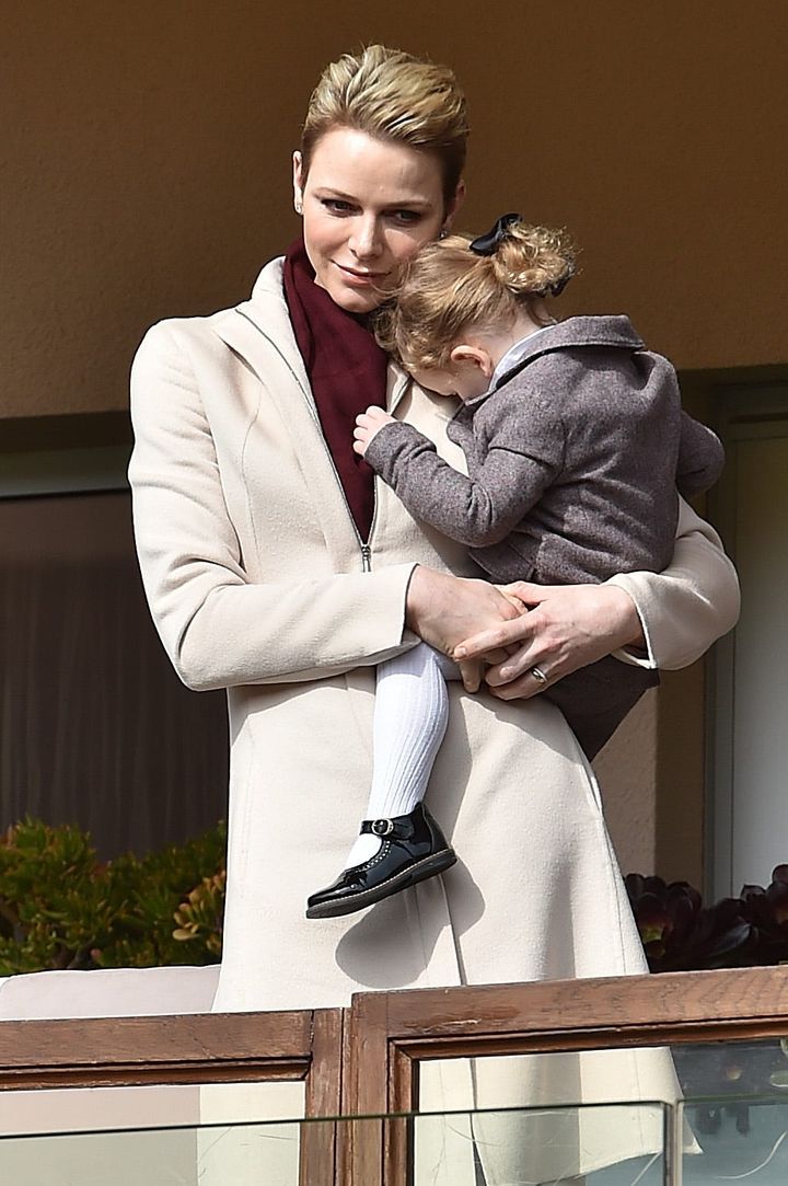 聖デヴォート祭では、ガブリエラ公女と同じ背の高さになるようしゃがんだシャルレーヌ公妃。シックな冬ファッションをまとった2人は、本当におしゃれ&可愛い母娘だ。“ガブリエラ公女はパパ似、 ジャック公子はママ似”と言われることも多いようだが、この時は“母娘そっくり!”と話題になった。