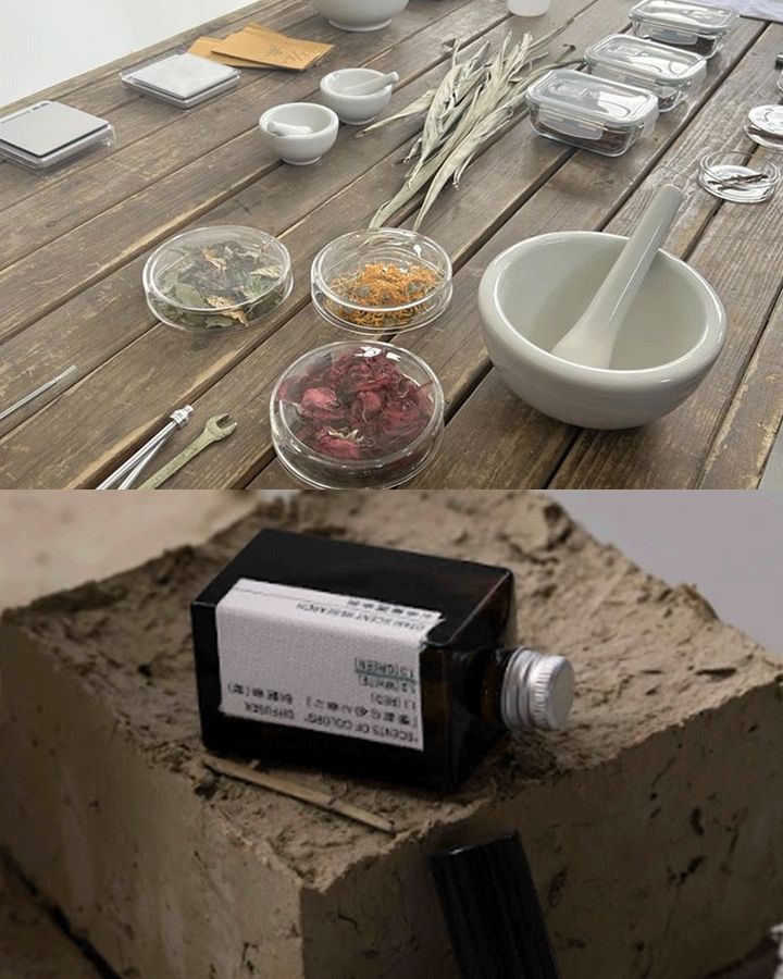 また、ショップ内には「有用植物調合室」を併設し、フレグランスやお香の開発も行う。手がけるのは、クラフトジンや紅茶を提案する「ホロン」の堀江 麗さん。植物と人の関係性を軸に、土地の記憶や営みに着目し、蒸留などのプロセスを通して香りを表現している。今後は蒸留体験や染色、ハーブ調合などのワークショップ、教育プログラムも開催予定。