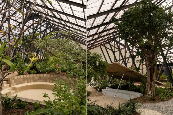 広大な庭は大きく3つのエリアで構成。温室や内庭でアジアの観葉植物を育てる「ガーデンリビング」、屋外で日本の四季を感じられる「アウトドアリビング」、そして人々が集まり、実りを分かち合う「公園と畑」。いずれも植物に囲まれながら滞在できる、心地良い空間だ。