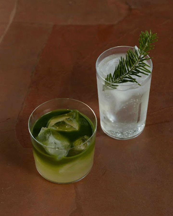 ドリンクもまた、植物の魅力を体感させるラインナップ。苑内のハーブやよもぎを用いたラテやハーブティー、レモンバームや黒文字、柑橘を合わせたモクテルなど、香りのレイヤーを楽しめる一杯がそろう。