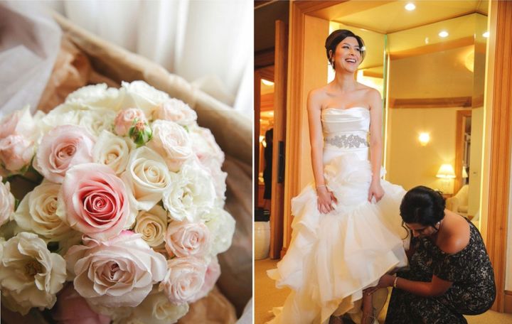<写真>ブラッシュピンク×アイボリーのローズブーケと、クリーンなドレス。 色数を抑えた“上質なニュートラル”が、「Quiet Luxury」の入り口。
