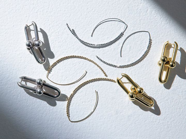 ジレセットアップ/sacai 長袖Tシャツ/トゥモローランド ピアス、バングル/Tiffany & Co.