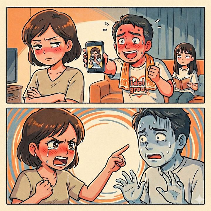 「これ聴けよ!いいだろ?」と地方アイドルを推す夫。だが、推し活で隠していた夫の秘密とは
