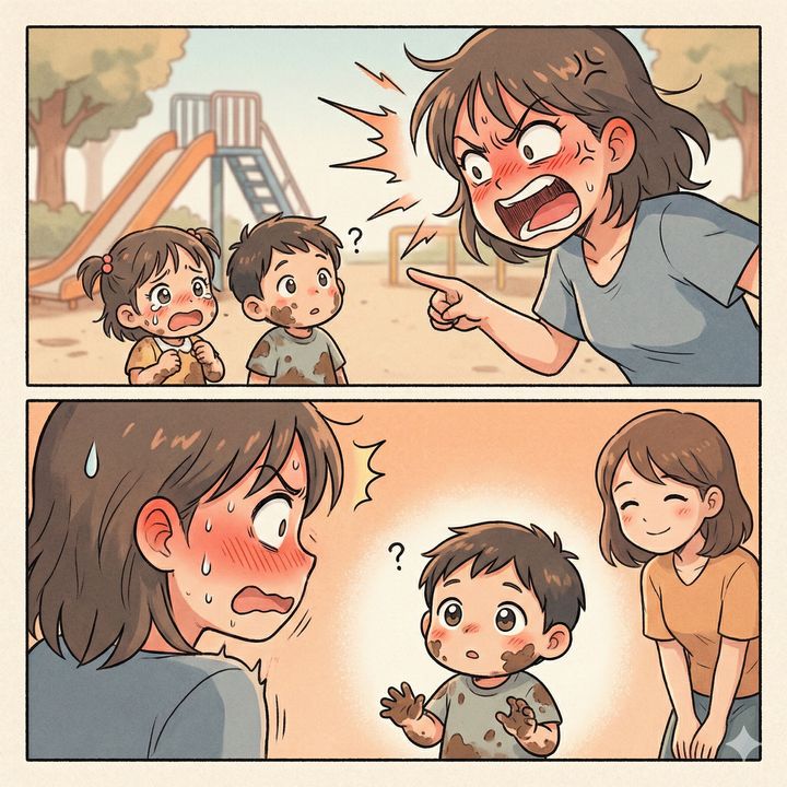 また始まった……そう溜息をつこうとした瞬間、泥だらけの手をした私の息子が、キョトンとした顔で彼女に近づき、こう言ったのです。