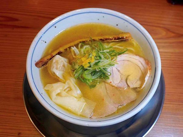 あさりやホタテの旨味がスープに溶け込み、淡海地鶏のコクと重なります。 あさりとほたてのワンタンも入り、貝のおいしさがより一層際立つ、満足感あふれる一杯です。 《貝塩そば 900円》