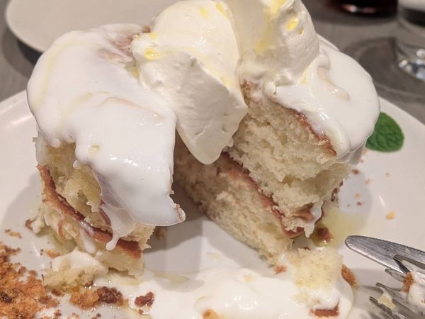 ふわっと焼き上げられたパンケーキに、ミルキーなバターのコク+軽やかな塩ホイップ。