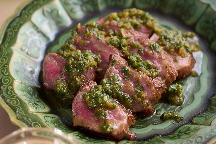 2026年日本酒dancyu「出会えてよかった!心ふるえる酒」特集では、人気酒場に家庭でもつくれる酒肴レシピを教えてもらいました。プロならではのセンスが光る料理ばかりで酒がますますおいしくなること間違いなし!盛り映えする料理が多いので、ゲストを招いた酒宴にもご活用ください。 今回は、四谷三丁目「鎹(かすがい)」による「大葉・わさび・青ねぎ醤油の万能ソースと牛肉のグリル」をご紹介します。