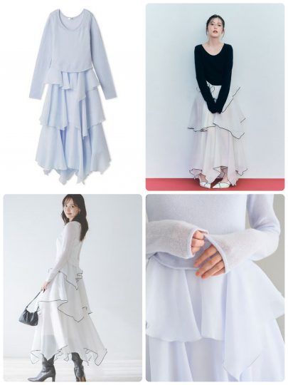 ティアードキャミソールワンピとニットプルオーバーをセットに。単品でも着用可能です。