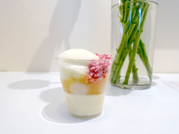 もちもちの白玉は安定のおいしさで、中でも印象的だったのが「ココロ踊る方へ」のトッピング。口の中でパチパチと弾けるポッピングキャンディーで、思わずびっくり! 名前のとおり、弾けるような楽しさがきちんと食感や味で表現されていて、他のコスメはどんな味なのかも気になってしまいました。