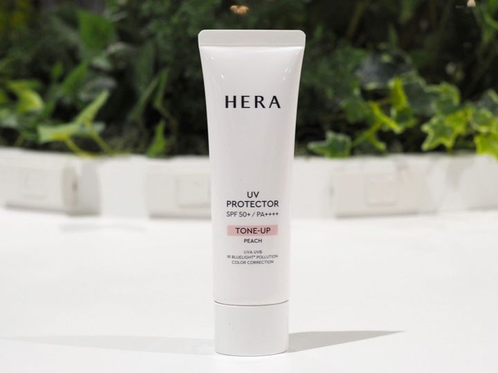 よしかわ:HERAの「UVプロテクター トーンアップP」も血色感をプラスするピーチピンクカラーで、白浮きせずにトーンアップをかなえてくれます。UVカット以外にもブルーライトやPM2.5など複数の外部環境から肌をプロテクトしつつ、さらっとした仕上がりで上からファンデを重ねてもズルズルしなさそう。
