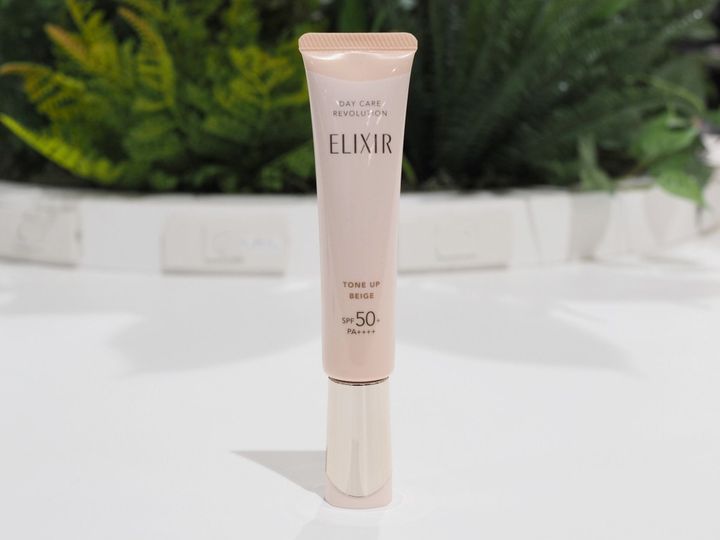 よしかわ:エリクシールの「デーケアレボリューション トーンアップ BE + ca」は、大人にこそ使ってほしい新色! 乳液感覚はそのままに、ピュアベージュのカラーがシミや色ムラをカバーしてヘルシーな肌をかなえてくれます。既存のベビーピンクの「トーンアップ SP + aa」も血色感のあるかわいい肌になれるから好きだったんだけど、夏に日やけしがちな私にとってはちょっと白いかなと思うシーンがあって……。これは素肌をきれいに見せてくれるカラーなので大のお気に入りになりました。