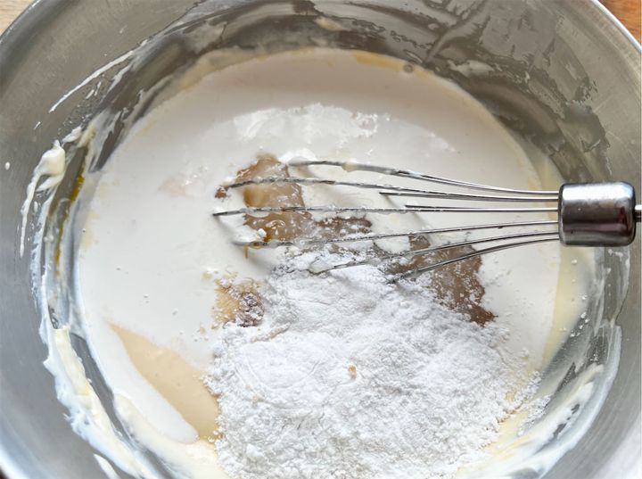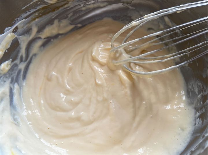 3. [A]を加えて、なめらかになるまで混ぜ合わせる。