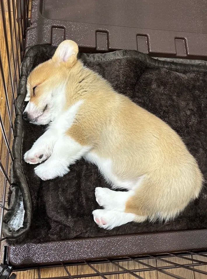 子犬だった2年前と、2026年2月現在の寝姿をXに投稿したところ、反響が寄せられました。