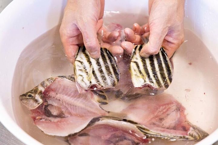 小さめで平べったいカゴカキダイ。でも、脂がよくのっている。さばいていると包丁や手が脂だらけになり、保湿クリーム代わりになった。水仕事をしているのに手がツルツルになるなんてちょっと得した気分だ。