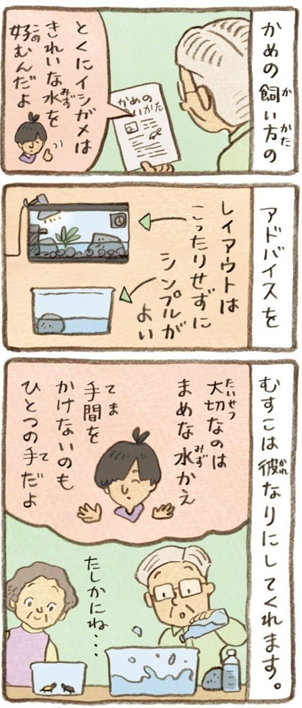 毎日の水かえや日向ぼっこ…。かめを飼育するうえで大切なポイント/おばあちゃんとかめ