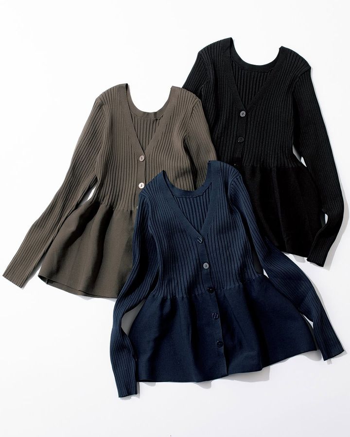 ③前後2wayで使えるからコスパ最強!程よく華やぐ「ニットペプラムトップス」