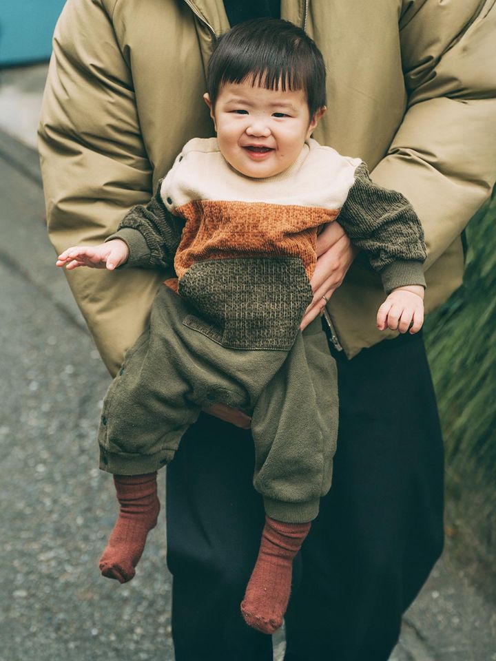 ママとお揃いのブランドで夫婦リンク。タウンユースにもなじむ、スポーティなデザインが冬の動けるコーデにぴったり♪