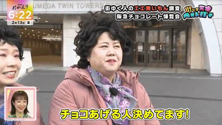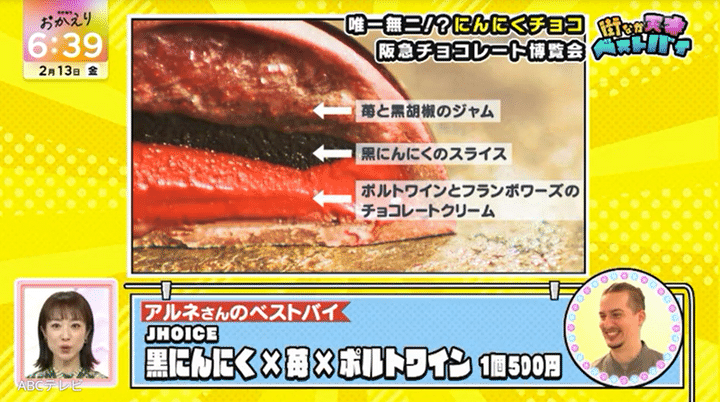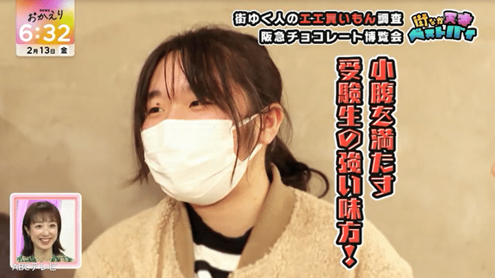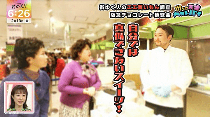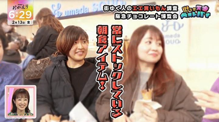なお、阪急バレンタインチョコレート博覧会にいた人々のベストバイは、情報番組『newsおかえり』(ABCテレビ、毎週月曜~金曜午後3時40分より放送)内の「街なか天才ベストバイ」2月13日放送回で紹介されました。