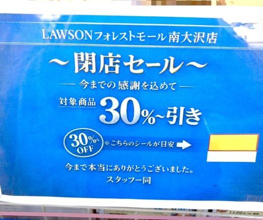 3. 【閉店】2/28に閉店のローソンフォレストモール南大沢店で閉店セール中!