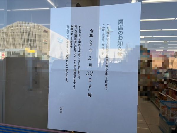 東京都八王子市、京王線南大沢駅近くのLAWSONフォレストモール南大沢店が、2026年2月28日9時をもって閉店するそうです!
