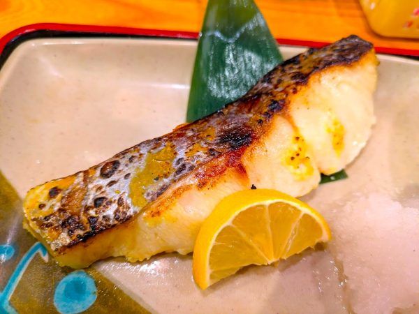おいしそうな白身魚ですね。でも、成分からすると赤身魚らしいです。青魚のように皮がキラキラしています。面白い魚ですね。身がやわらかで骨も少ないので食べやすいです。おいしかったです。スタッフさん達の連携もスムーズで、活気のある海鮮居酒屋さんでした。夜のメニューもおいしそうでした。楽しみです。いいですね~。