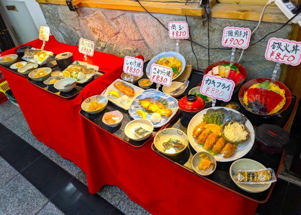 料理の見本がずらっと並んでいてわかりやすいです。おいしそうですね。そして、ランチが安い!