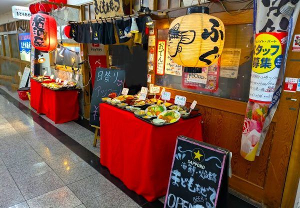 気になりつつも、せっかくなので地下レストラン街をぐるりと回ってくると、メニューの見本が少しずつ下げられていっています。お料理が無くなったら、見本を下げて行くシステムなのですね~。とってもわかりやすいですね。