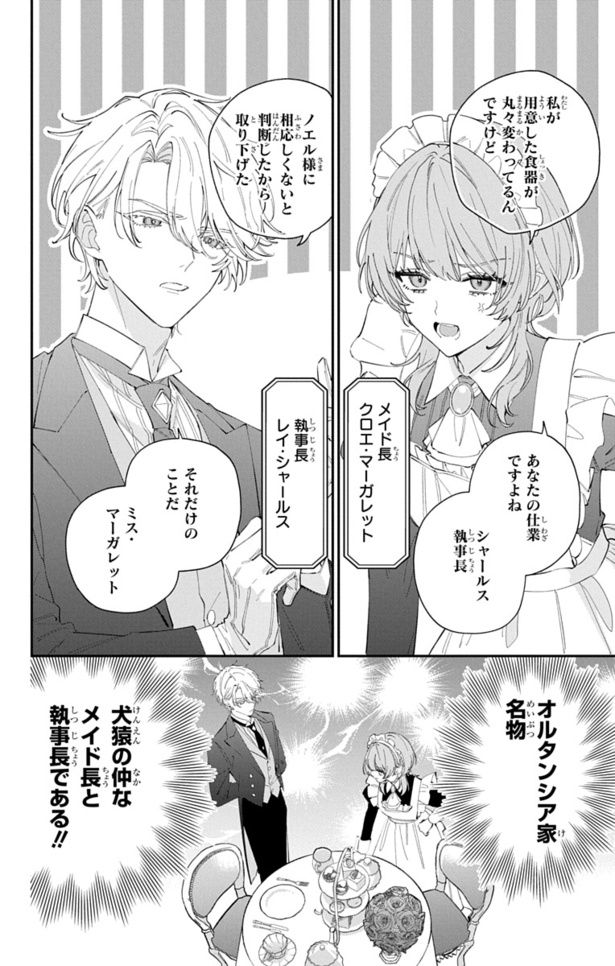 物語の舞台は、貴族社会でも指折りの名家「オルタンシア家」。主人公は、そこで次期当主ノエルに仕えるメイド長のクロエだ。彼女はノエルを尊敬、というよりもはや信仰しており、彼の役に立つために日夜全身全霊で仕事に尽くしている。
