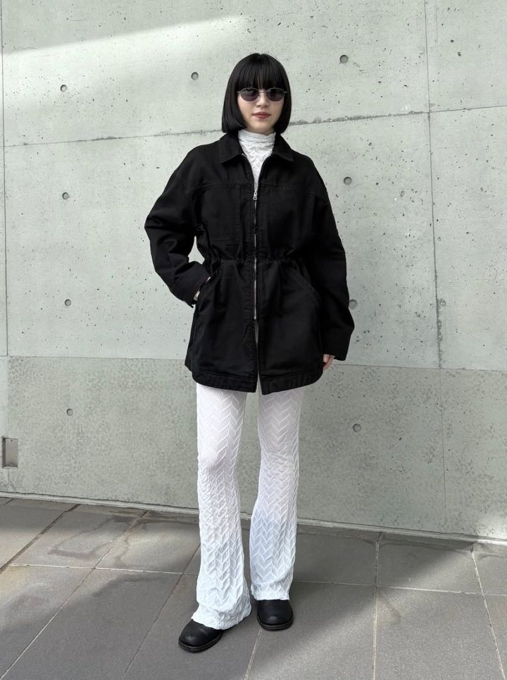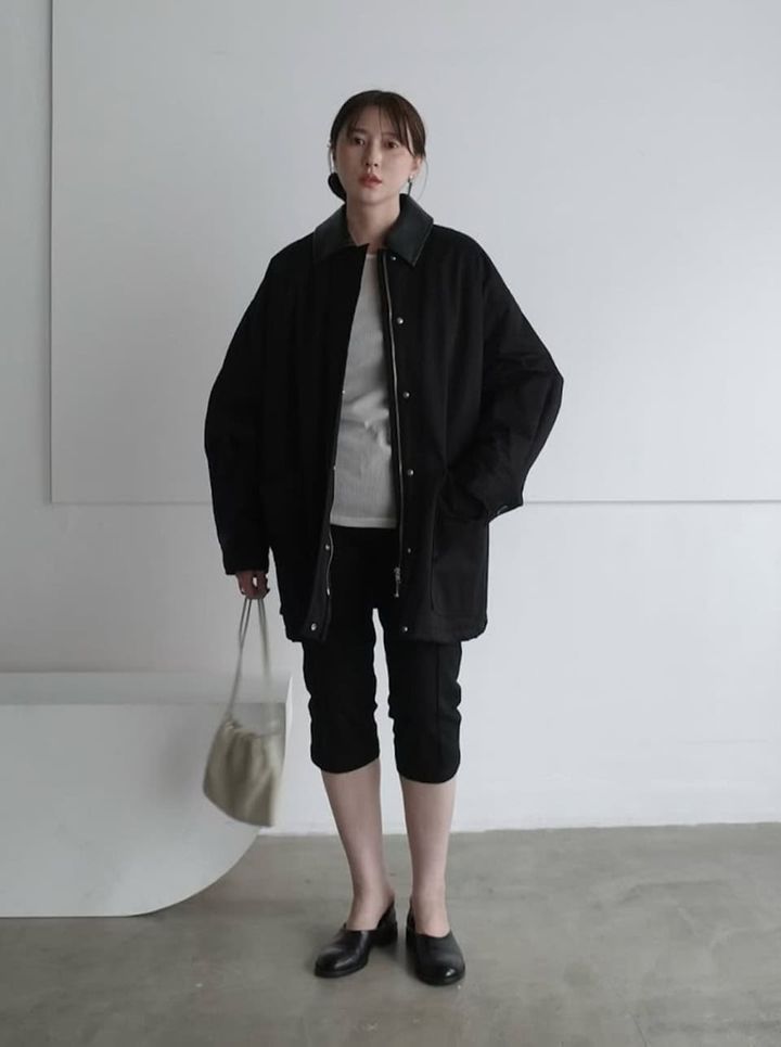 ブラックをベースに、オーバーサイズの白いダウンを羽織ったモノトーンコーデ。ボリュームのあるダウンですが、ホワイトのチョイスなら軽やかにまとまります。