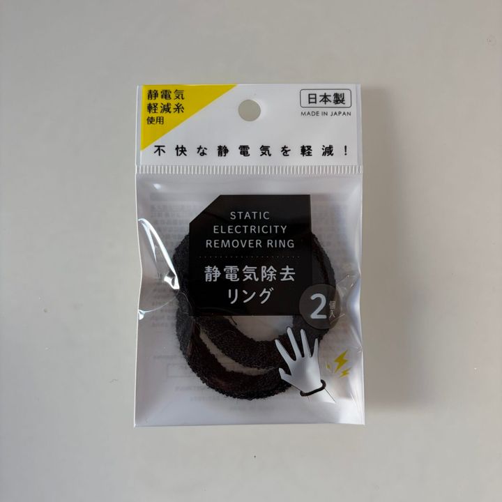 この静電気予防リングは静電気を通しにくい糸を使っているそう。ゴムなので小さめで、子供達の腕にもピッタリ。110円で2つも入っているのも子供達と分けて使えてお得♪