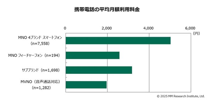 2025年のスマホ月額料金は平均4,356円、データ使用量はさらに増加【MM総研調べ】