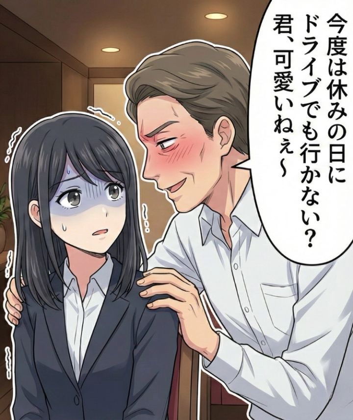食事が終盤に差し掛かるにつれて、お酒の回った上司の言動はさらにエスカレートしていきました。距離はどんどん近くなり、「若い子と飲むと元気になるな」「今度は休みの日にドライブでも行かない?」と、明らかなセクハラ発言が飛び出すようになったのです。