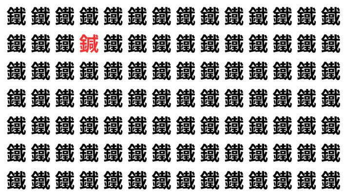 たくさんの「鐵」の中に、よく似た別の漢字が1文字だけ隠れています。