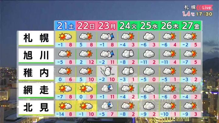 北海道のあす21日(土)の天気と、週間予報を、HBCウェザーセンターの児玉晃(こだま・あきら)気象予報士がお伝えします。