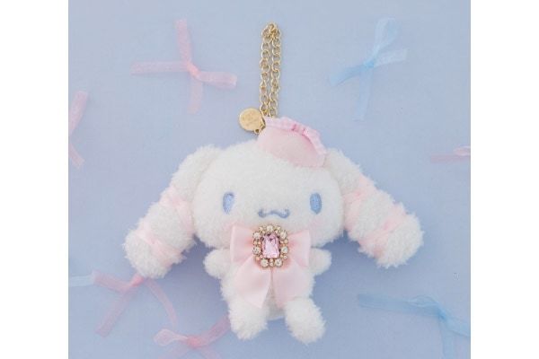 デザインは、ブランドのアイコンであるリボンを「シナモロール」の耳に飾り付け、頭にはベレー帽をくわえています。胸元にはビジュー付きのサテンリボンをあしらい、おめかししたデザインに仕上げました。
