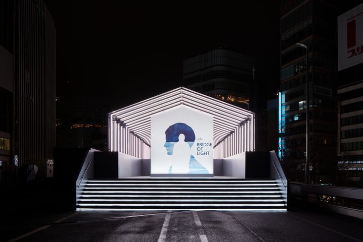 高架上に浮かび上がる、この夜のためだけに設営されたショー会場。スクリーンに映し出される物語が提示するのは、季節や年月を越えて、永遠に色あせることのない「エルメス」の男性像。