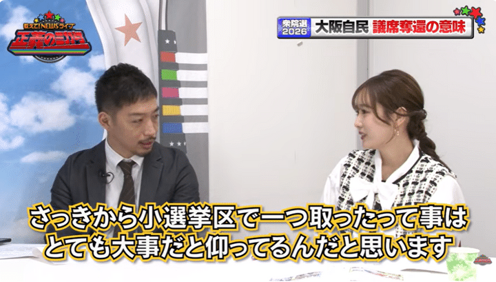 「なので、さっきから小選挙区で一つ取ったことはとても大事だと仰ってるんだと思います」