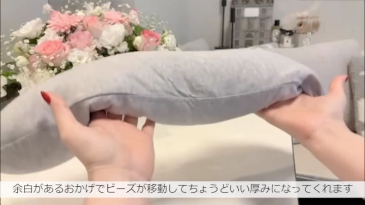 中には適度な量の微粒子ビーズが入っています。あえてビーズの量に余裕を持たせていることで、圧迫感はありませんが首にしっかりフィット!