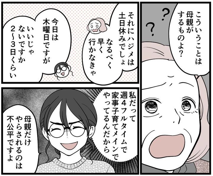 義母は古い人間なのか、やはり子育ては母親がするものと思っているので、本当にこういうときに困ります……!