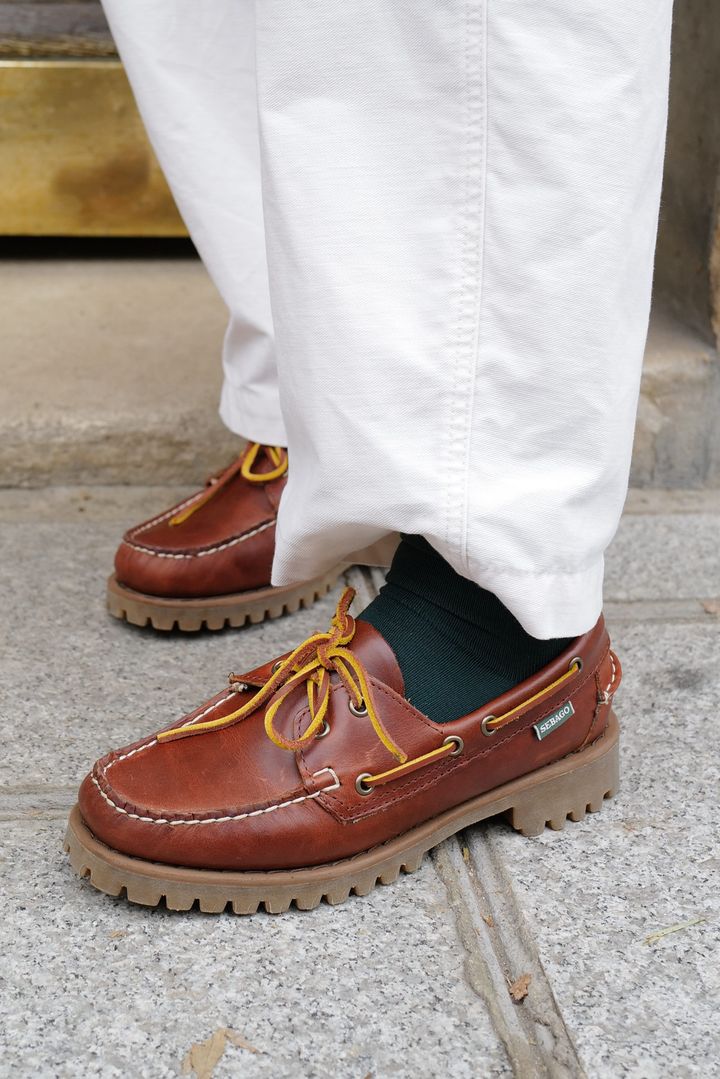 レースアップのデッキシューズは北米ブランド「ロココ」のもの。カジュアルかつタフなルックスがネタのテイストにマッチ。