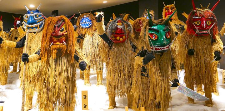 なまはげ柴灯まつりの会場である真山神社近くの「なまはげ館」では、男鹿の約85地区150種類以上のなまはげが一堂に会する