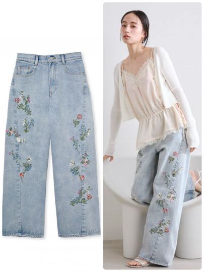 ワイドコクーンシルエットに、ボタニカル刺繍をあしらったスペシャルなデニム。ハイウエストで脚長効果抜群。また、前振りの脇線が立体感をプラスし、全体バランスをきれいに見せてくれます。