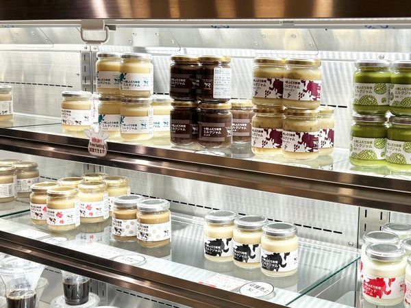 ショーケースには小瓶に詰められたバラエティ豊かなミルクジャムが整列。道産砂糖を使用した優しい味わいが特徴で、お手土産にも好評のアイテムなのだとか◎
