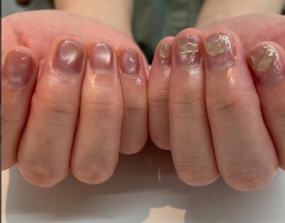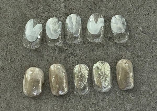 最近人気のマグネットネイル。専用の磁石を当ててラメやパールを動かし、立体感やグラデーションを作れる
